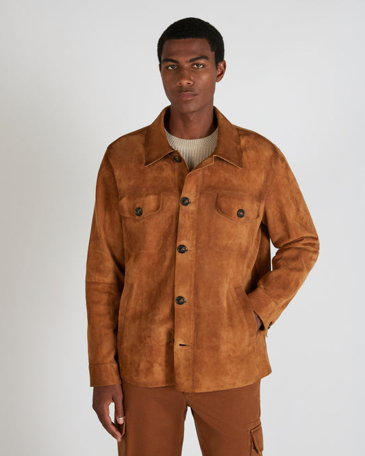 Loose fit leather suede overshirt