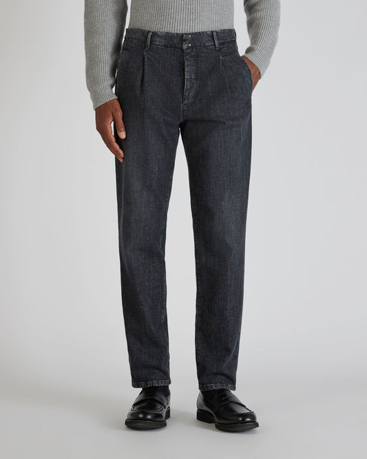 Tapered fit tailored trousers in cotton denim
