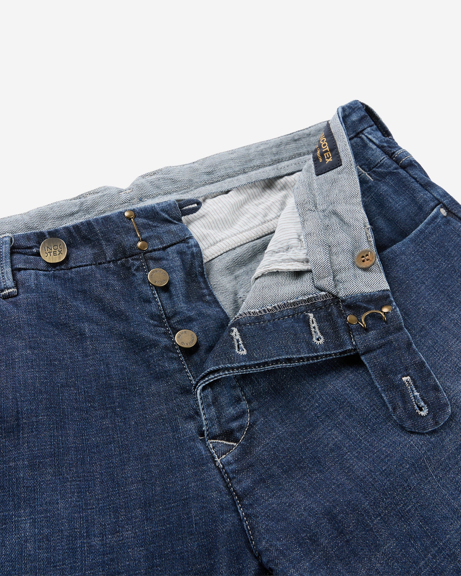 When denim meets tailoring, the result are five-pocket trousers that redefine the essence of this garment. This is the goal of the Incotex Blue Division brand, which here offers a Made in Italy trouser inspired by fine tailoring with details like the belt design and the twin coin pockets on the front. Moreover, the cotton is produced through a certified process that ensures worker safety and respect for the environment at all stages of production.