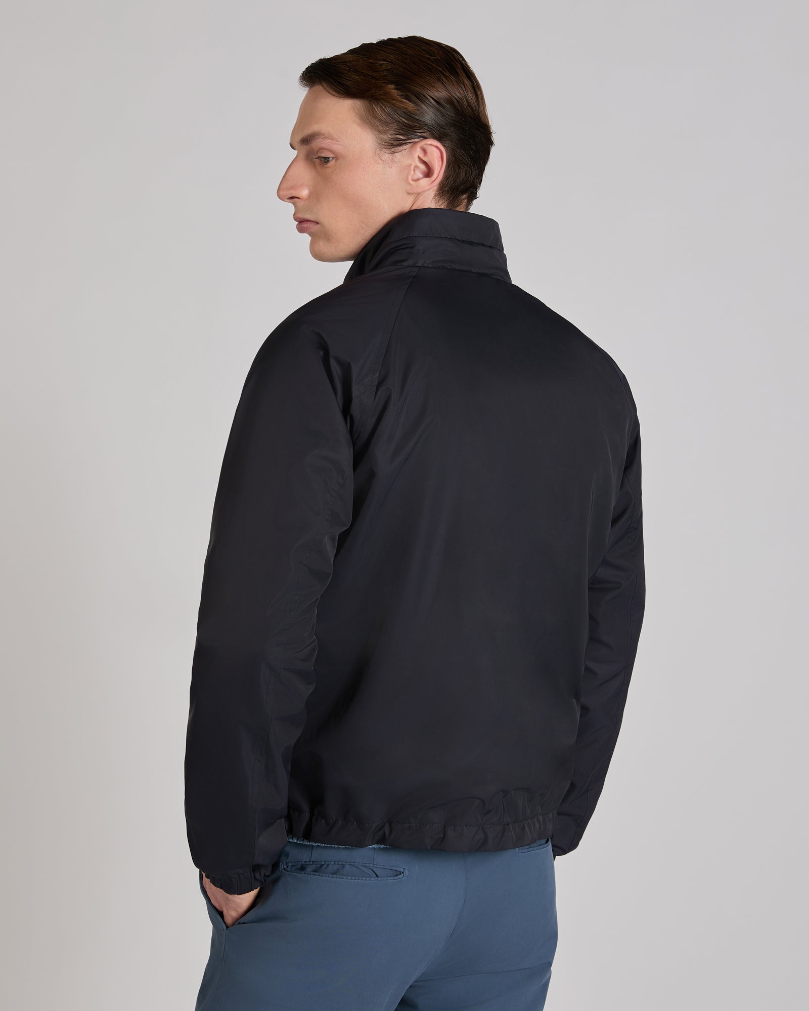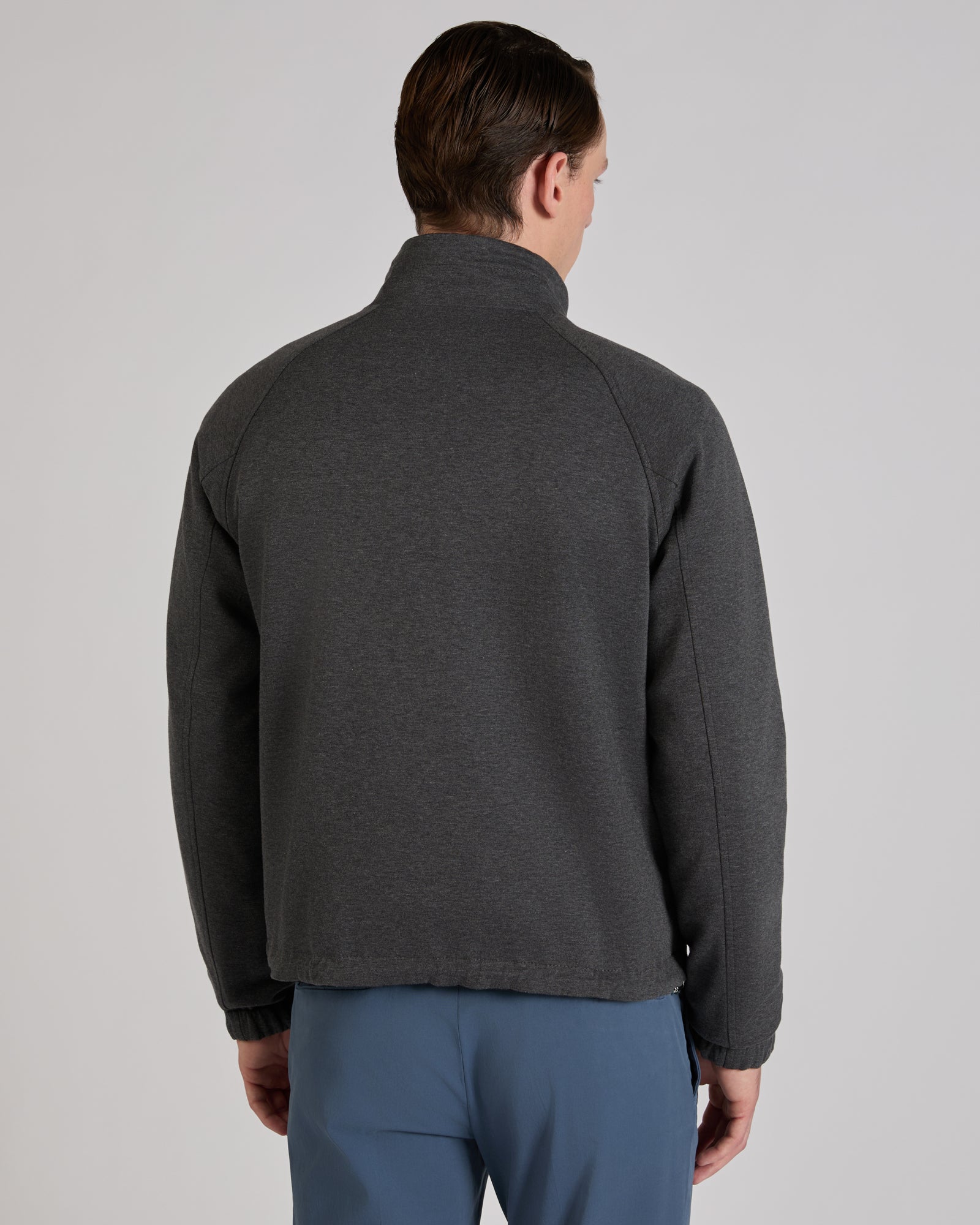 A dynamic, refined and highly functional model, this outerwear garment is completely reversible. On one side, a polyester taffeta provides protection when you're more exposed to cold and wind. The other side, in mélange jersey, is an excellent alternative on occasions when you want a more refined yet casual garment. The skilful construction of the zip, the pockets, the bottom of the garment and the seams means that there is no difference between one side and the other, making them both impeccable.